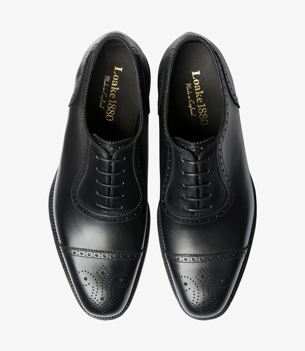 Premium semi-brogue shoe, available in mahogany or black calf leathers. Strand uses the Capital last shape in an F fitting, and is made in England.